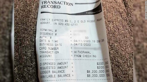 «Το ποσό που εμφανίζεται στην απόδειξη ATM δεν αντικατοπτρίζει με ακρίβεια αυτό που ήταν στον λογαριασμό. Λυπούμαστε για τον πελάτη, αλλά χαιρόμαστε που έλαβε την κατάθεση από την κρατική βοήθεια» σχολίασε εκπρόσωπος της τράπεζας στο CNN.