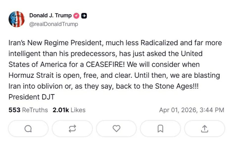 Ο Ντόναλντ Τραμπ δεν κατονόμασε τον νέο πρόεδρο του Ιράν στην ανάρτησή του, ωστόσο τον χαρακτήρισε «πολύ λιγότερο ριζοσπαστικοποιημένο και πολύ πιο έξυπνο συγκριτικά με τους προκατόχους του».