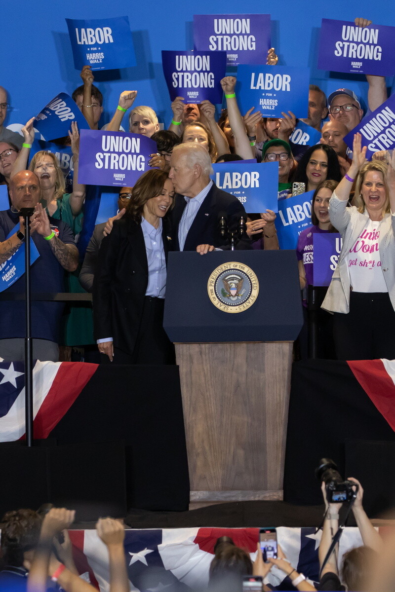 Στην πρώτη κοινή τους προεκλογική εμφάνιση ο νυν πρόεδρος των ΗΠΑ και η υποψήφια των Δημοκρατικών απευθύνθηκαν στην εργατική τάξη της χώρας, θέτοντας το δίλημμα «Κάμαλα Χάρις ή Ντόναλντ Τραμπ» και απαντώντας πως «ο ένας από τους δύο υποψηφίους έχει ιστορικό εχθρότητας προς τους εργαζόμενους».