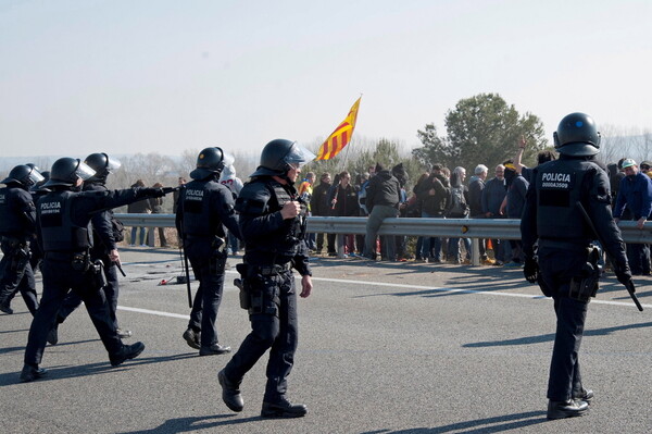Αστυνομικοί των μονάδων αντιμετώπισης ταραχών συγκρούστηκαν σήμερα με διαδηλωτές υπέρ της ανεξαρτησίας της Καταλονίας, στη Βαρκελώνη, στις κινητοποιήσεις διαμαρτυρίας για τη δίκη των 12 αυτονομιστών ηγετών.