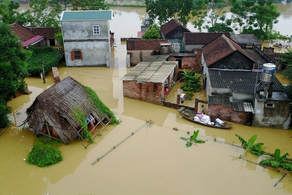 Οι ισχυρές βροχοπτώσεις που πλήττουν το βόρειο και κεντρικό κυρίως τμήμα του Βιετνάμ τις τελευταίες μέρες προκάλεσαν καταστροφές σε πολλές κατοικημένες περιοχές. Τουλάχιστον 54 άνθρωποι έχασαν τη ζωή τους, περισσότερα από 200 σπίτια έχουν καταρρεύσει, ενώ τουλάχιστον 200 βοοειδή και 9.700 πουλερικά έχουν πεθάνει, σύμφωνα με δημοσιεύματα των τοπικών ΜΜΕ. Στην φωτογραφία πλημμυρισμένα σπίτια στην περιοχή Chuong My στο Ανόι.