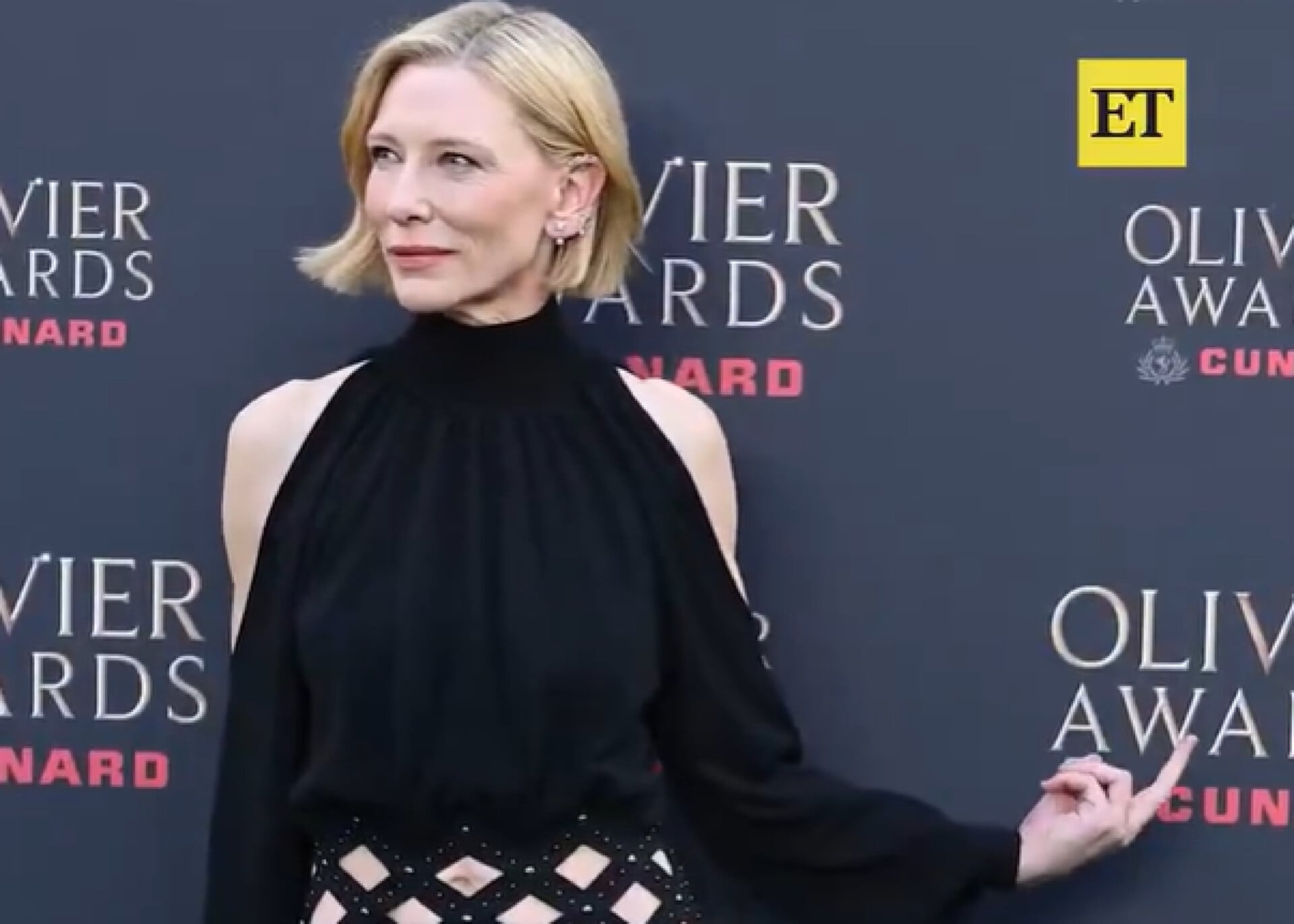 Η Κέιτ Μπλάνσετ εντοπίστηκε να κάνει μια άσεμνη χειρονομία, στο κόκκινο χαλί των Olivier Awards την Κυριακή.