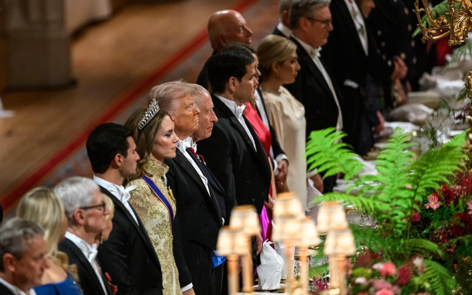 Στον Αμερικανό πρόεδρο και τη σύζυγό του, Μελάνια, παρέθεσαν δείπνο ο βασιλιάς Κάρολος και η Καμίλα μέσα στο Κάστρο του Ουίνδσορ την Τετάρτη, μαζί με αρκετά κορυφαία στελέχη επιχειρήσεων, όπως ο Τιμ Κουκ της Apple, ο Τζένσεν Χουάνγκ της Nvidia και ο Σαμ Άλτμαν της OpenAI.
