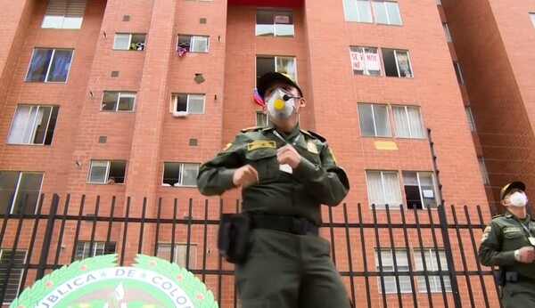 Αστυνομικοί επισκέπτονται γειτονιές της Μπογκοτά και χορεύουν zumba, προκειμένου να ενθαρρύνουν αλλά και να διασκεδάσουν τους ανθρώπους που είναι στο σπίτι, λόγω κορωνοϊού. Πολλοί είναι αυτοί που ανταποκρίνονται στο κάλεσμα και χορεύουν από τα μπαλκόνια τους.