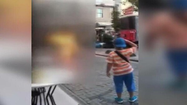 Άμεσα άνθρωποι από τα γύρω καταστήματα έσπευσαν να τον σβήσουν με πυροσβεστήρες και ο άνδρας σωριάστηκε στο έδαφος.
