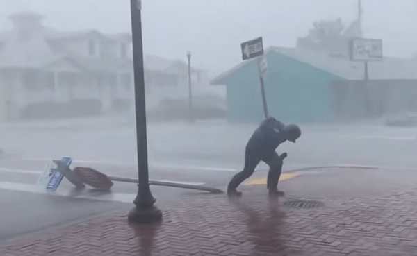 Ο Jim Cantore ήταν στη μέση του δρόμου και, όπως φαίνεται από τα βίντεο που κυκλοφορούν από τη live μετάδοσή του, πάσχιζε να σταθεί στα πόδια του καθώς πάλευε με τους θυελλώδεις ανέμους.