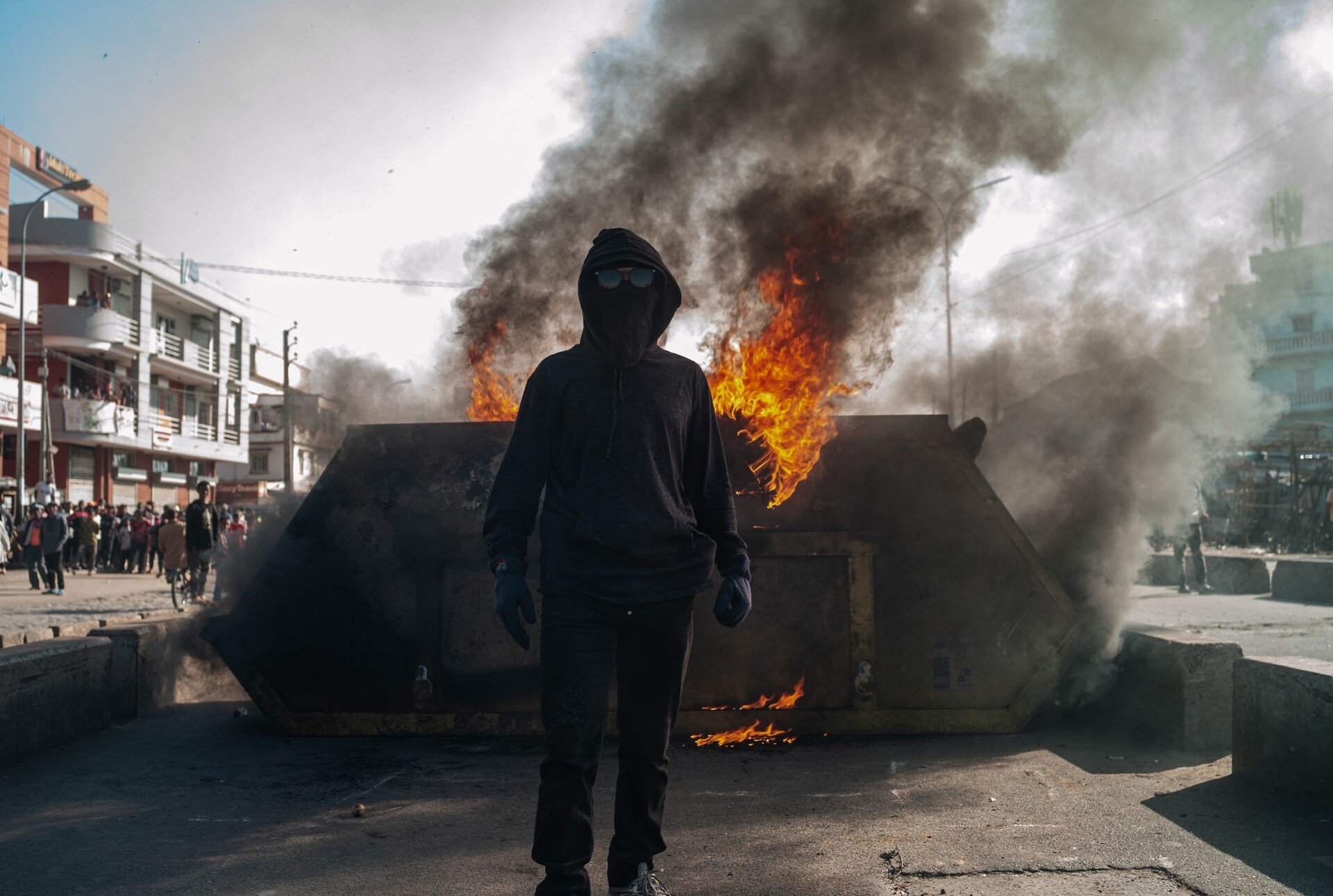Διαδηλωτής ανάμεσα σε φωτιές στη Μαδαγασκάρη / EPA