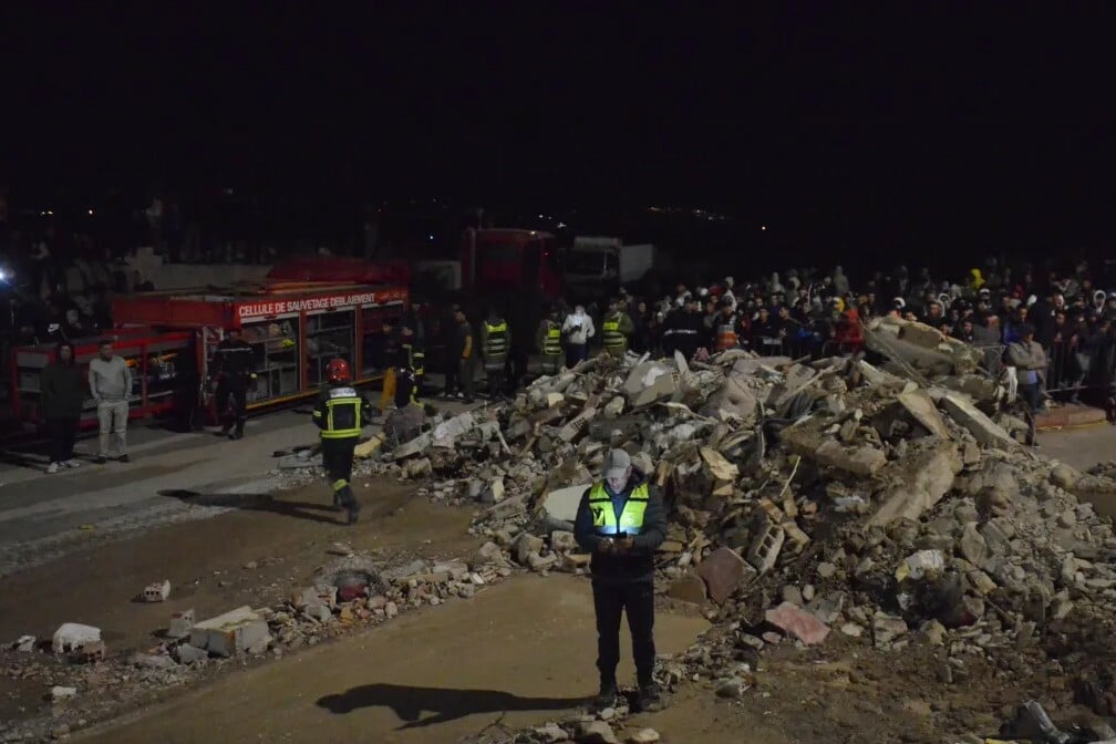 Το SNRT μετέδωσε πλάνα με διασώστες και ενοίκους να σκάβουν μέσα στα χαλάσματα αναζητώντας τυχόν επιζώντες κατά τη διάρκεια της νύχτας.