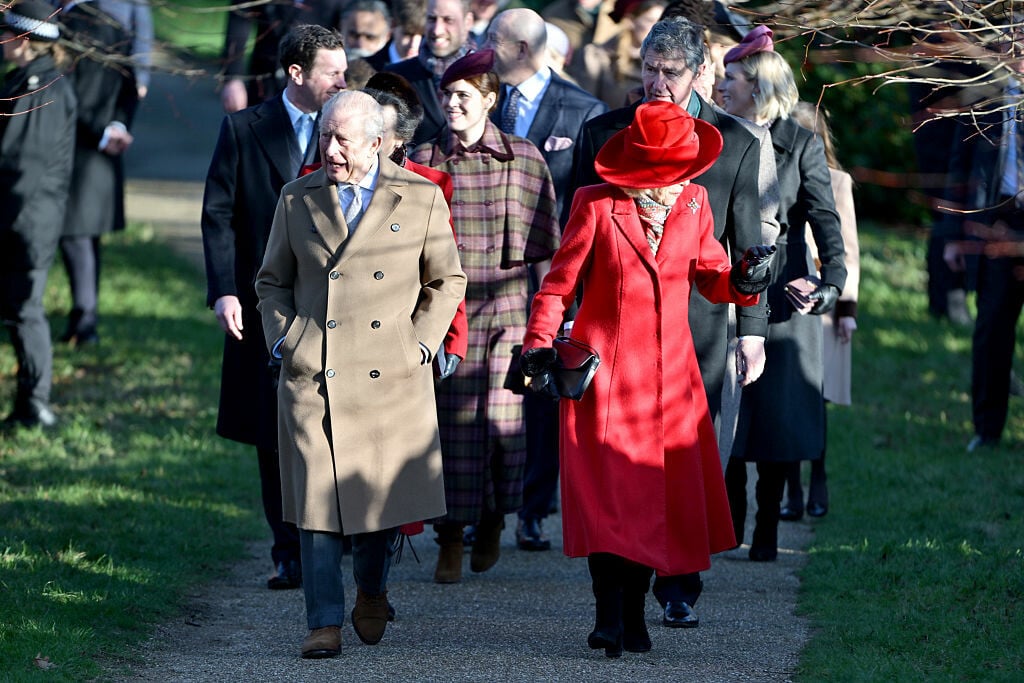 Ο Κάρολος και η βασίλισσα Καμίλα περπάτησαν μέχρι τον ναό της Αγίας Μαρίας Μαγδαληνής, στο ιδιωτικό κτήμα του μονάρχη στο Σάντριγχαμ, συνοδευόμενοι από τον πρίγκιπα και την πριγκίπισσα της Ουαλίας, Ουίλιαμ και Κέιτ, καθώς και τα παιδιά τους, τον πρίγκιπα Τζορτζ, την πριγκίπισσα Σαρλότ και τον πρίγκιπα Λούις, μαζί με άλλα μέλη της οικογένειας.