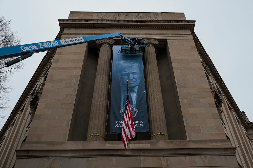 Μεγάλο πανό με τον Τραμπ αναρτήθηκε στην πρόσοψη του υπουργείου Δικαιοσύνης των ΗΠΑ