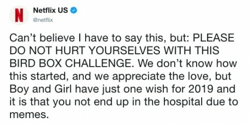 To ίδιο το Netflix αναγκάστηκε πρόσφατα να δημοσιοποιήσει ανακοίνωση προειδοποιώντας ότι το να αντιγράφει κανείς σκηνές από την ταινία ως μέρος δοκιμασίας και παιχνιδιού, είναι μια πολύ επικίνδυνη δραστηριότητα που μπορεί να οδηγήσει σε σοβαρούς τραυματισμούς.
