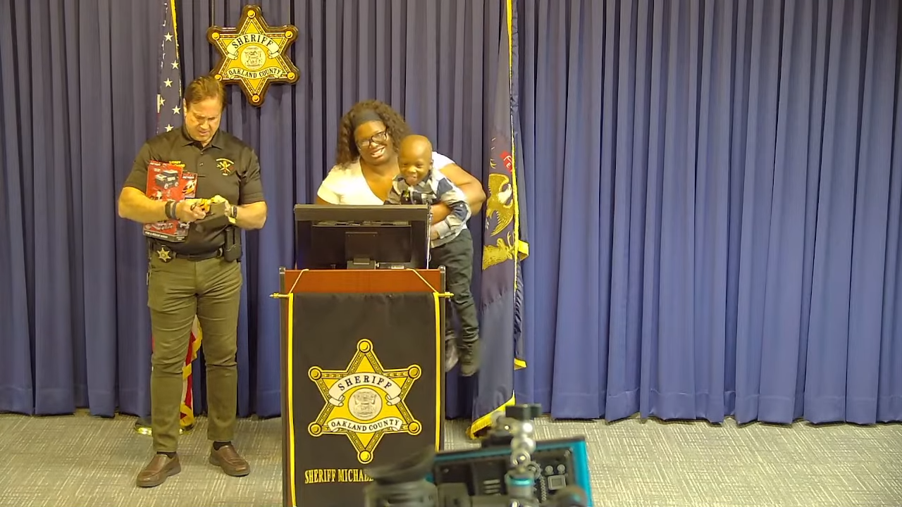 Ο μικρός Κόντι Τζέιμς Γουίλιαμς έλαβε τιμητικά τον τίτλο του «βοηθού σερίφη», όπως μεταδίδει το Guardian, έχοντας βοηθήσει τη μητέρα του, Σαντέλ Γουντς, η οποία όπως είπε αισθάνθηκε, ότι επρόκειτο να έχει κρίση σε μια ακατάλληλη στιγμή.
