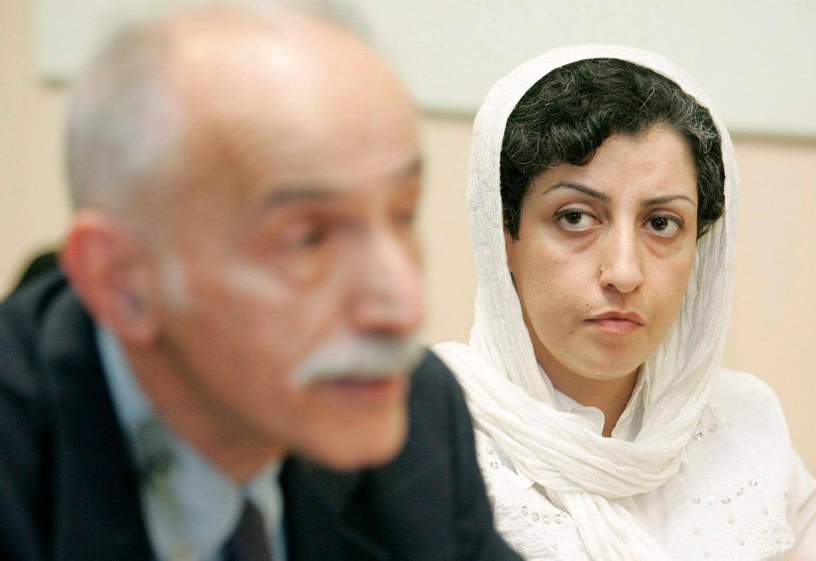 Η Ναργκίς Μοχαμαντί ακούει τον Karim Lahidji, πρόεδρο του Ιρανικού Συνδέσμου για την Υπεράσπιση των Ανθρωπίνων Δικαιωμάτων/ Φωτ. αρχείου ΕΡΑ