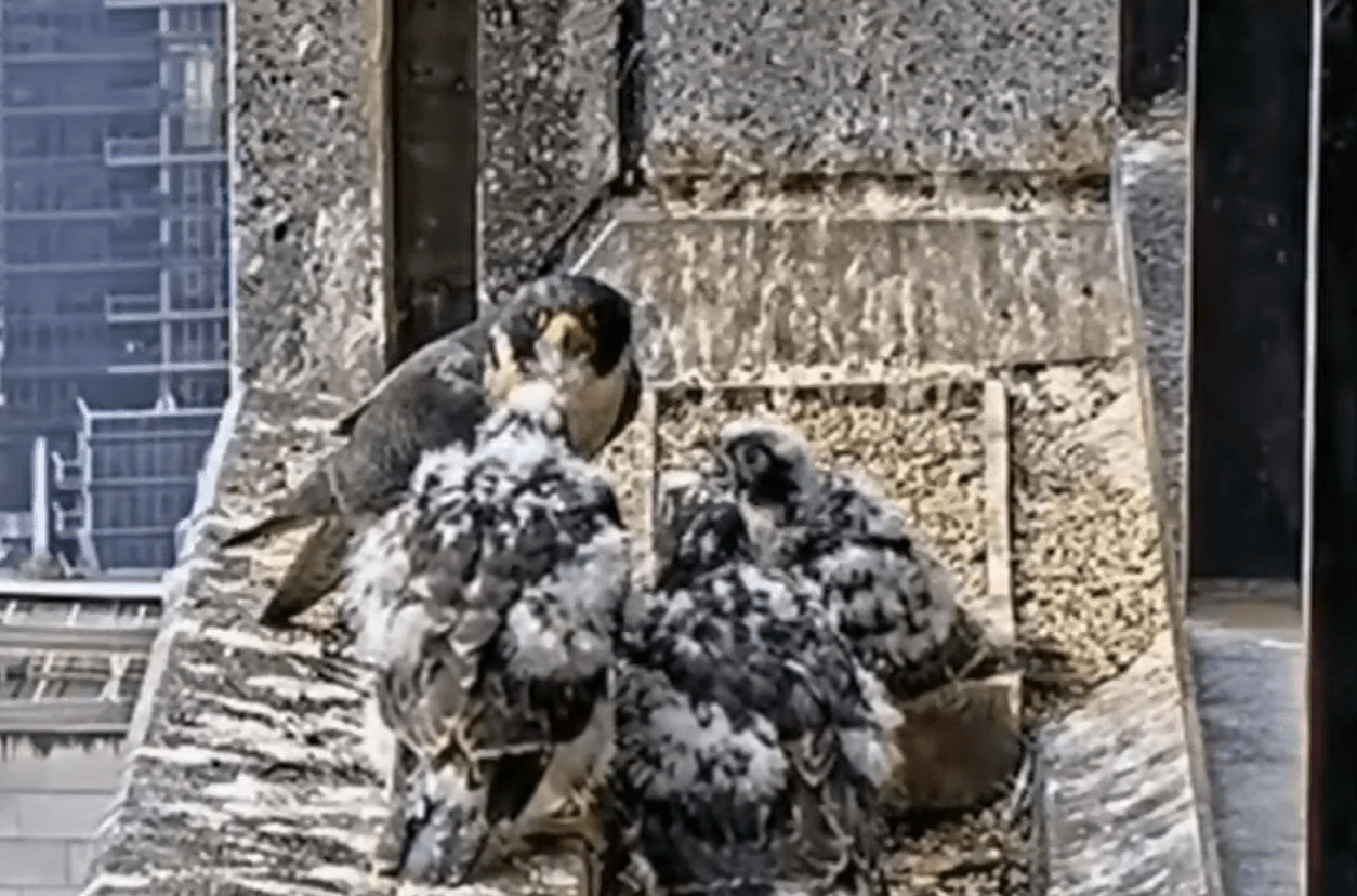 Αυτή την περίοδο, οι θαυμαστές του ριάλιτι παρακολουθούν με αγωνία τη στιγμή που τα μικρά, τα οποία εκκολάφθηκαν στα τέλη Σεπτεμβρίου, θα επιχειρήσουν την πρώτη τους πτήση. Τα βλέπουν να τρέχουν πάνω-κάτω, χτυπώντας τα φτερά τους στην προεξοχή του κτιρίου — 34 ορόφους πάνω από το έδαφος — ενώ η μητέρα τους πετάει από κοντά, κρατώντας περιστέρια στα νύχια της.
