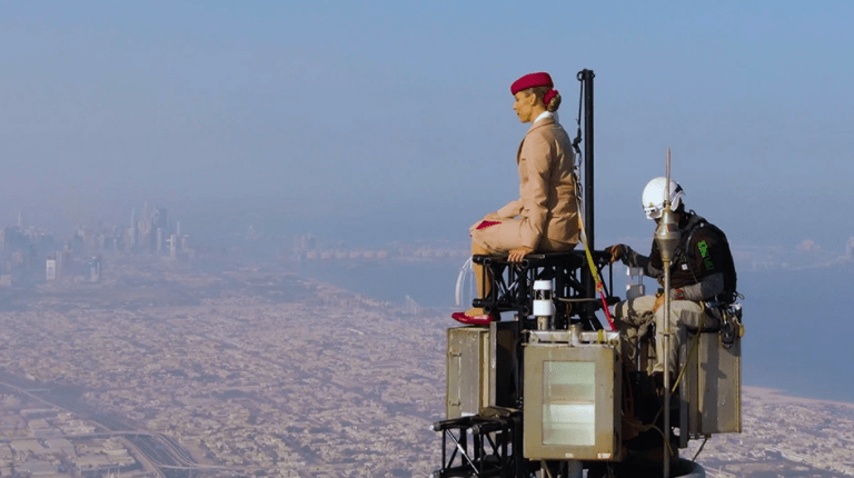 «Είμαι στην κορυφή του κόσμου», ακούγεται να φωνάζει η η Σμίθ. Στάθηκε ακίνητη σε ύψος σε 827 μέτρων για πέντε ώρες προκειμένου να ολοκληρωθούν τα γυρίσματα.