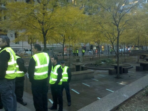 Οι «αγανακτισμένοι» δεν σκόρπισαν πάντως μετά την αστυνομική επιχείρηση. Πολλοί από αυτούς συγκεντρώθηκαν στην πλατεία Foley, μόλις μερικές εκατοντάδες μέτρα από την πλατεία Zuccotti.