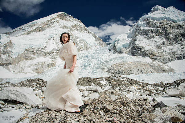 Χρειάστηκαν περίπου τρεις εβδομάδες μέχρι να φτάσουν στην κατασκηνωτική βάση του Έβερεστ ενώ μαζί τους ήταν και ο φωτογράφος τους, Charleton Churchill. Έχοντας περάσει όλον αυτόν τον καιρό από δύσβατα μονοπάτια και θερμοκρασίες πολικού ψύχους μέχρι ήπιες χιονοθύελλες και δυσκολίες από την έλλειψη οξυγόνου λόγω υψόμετρου, οι δύο ερωτευμένοι ορειβάτες αντάλλαξαν τελικά όρκους αιώνιας αγάπης με φόντο τις χιονισμένες κορυφές και το γυμνό τοπίο.