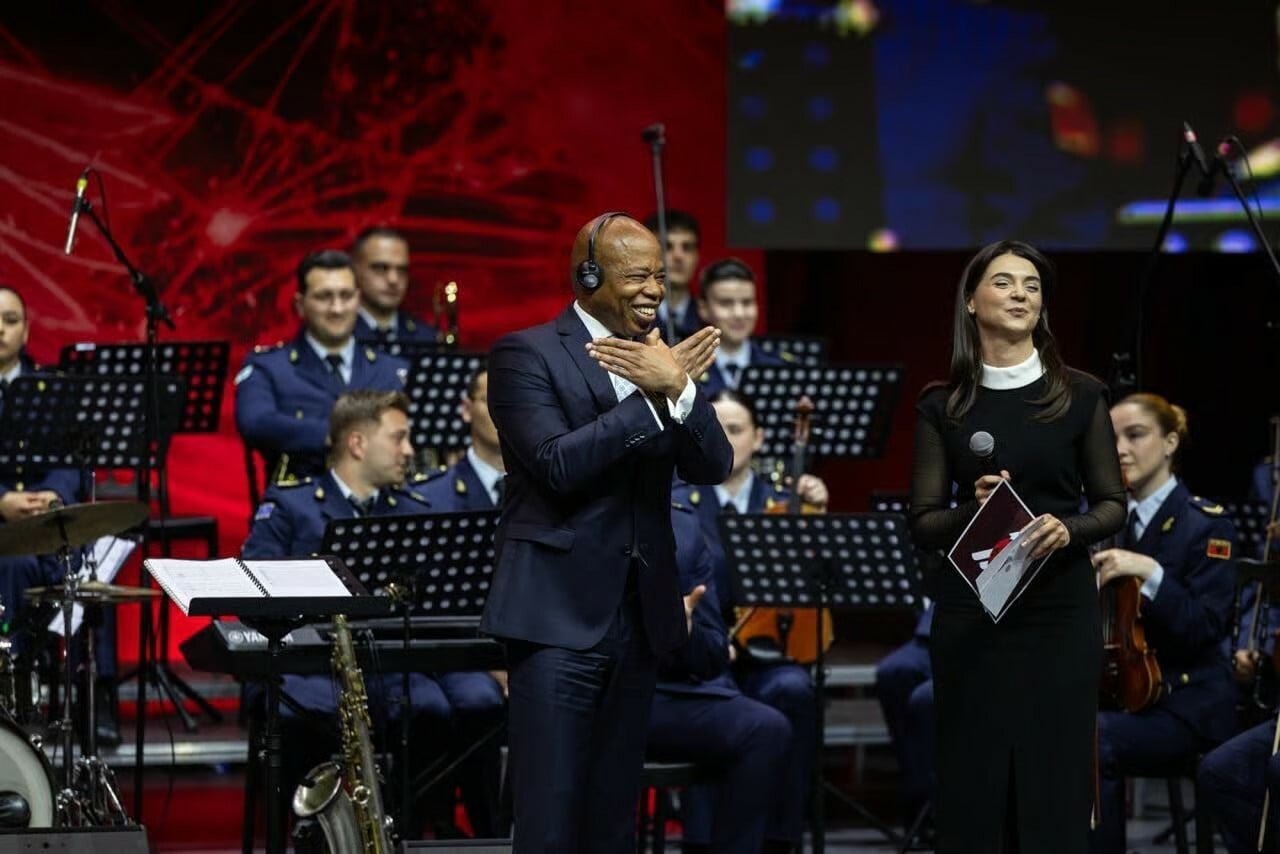 Λίγες ώρες αφού κατέθεσε τα βιομετρικά του στοιχεία σε δημοτικό γραφείο στα Τίρανα, ο πρώην δήμαρχος της Νέας Υόρκης, Έρικ Άνταμς, εμφανίστηκε σε εκδήλωση της αλβανικής διασποράς, φορώντας το παραδοσιακό λευκό καπέλο πλις και με φόντο τη σημαία της χώρας.