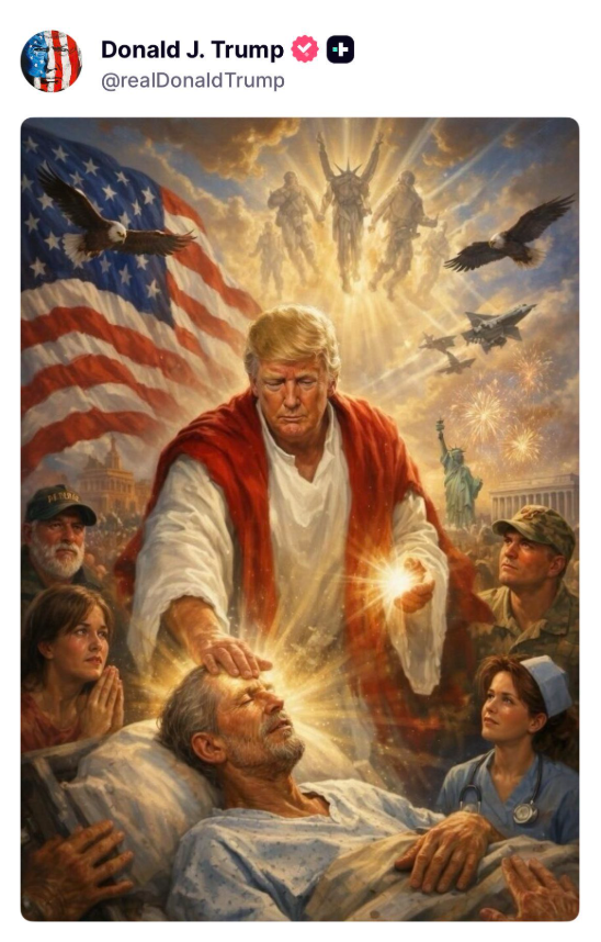 Η εικόνα, που είχε δημιουργηθεί με τεχνητή νοημοσύνη, απεικόνιζε τον Αμερικανό πρόεδρο να «θεραπεύει» έναν ασθενή σε νοσοκομειακό κρεβάτι, προκαλώντας έντονες αντιδράσεις από όλο το πολιτικό φάσμα στις ΗΠΑ, ακόμη και από υποστηρικτές του.