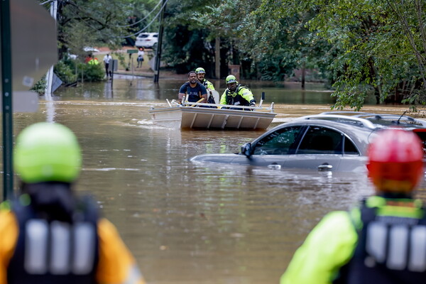 Οι αξιωματούχοι συνέχισαν τολμηρές διασώσεις με βάρκες, ελικόπτερα και μεγάλα οχήματα για να βοηθήσουν όσους είχαν εγκλωβιστεί στα νερά της πλημμύρας.