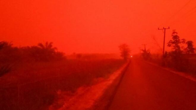Ο ουρανός πάνω από μια επαρχεία της Ινδονησίας έγινε κόκκινος μέσα στο σαββατοκύριακο, λόγω της εξάπλωσης των πυρκαγιών που καίνε τις τελευταίες ημέρες μεγάλο μέρος της χώρας.