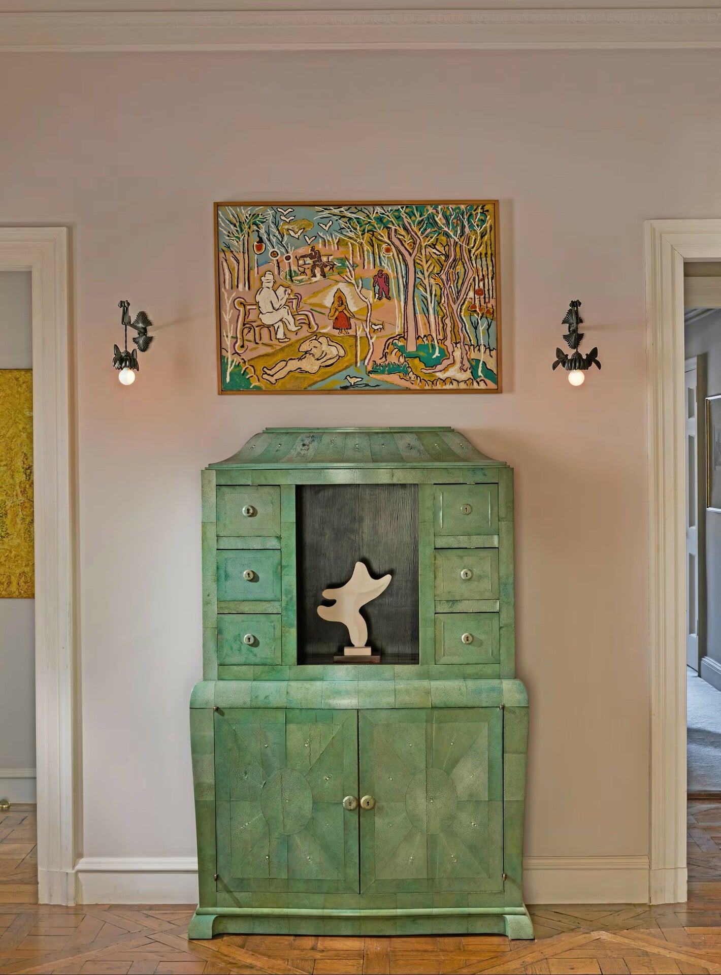 Ένα ακόμη από τα σημαντικά κομμάτια της δημοπρασίας είναι το ντουλάπι του Αντρέ Γκρουλ από το 1926, με εκτίμηση από 600.000 έως 800.000 δολάρια. Στη δημοπρασία περιλαμβάνονται επίσης το γλυπτό «Football» του Πικάσο στο εσωτερικό του και τα επιτοίχια φωτιστικά του Αρμάν-Αλμπέρ Ρατό από το 1925, ενώ ο πίνακας του Μπόφορντ Ντιλέινι που κρέμεται από πάνω δεν πωλείται.