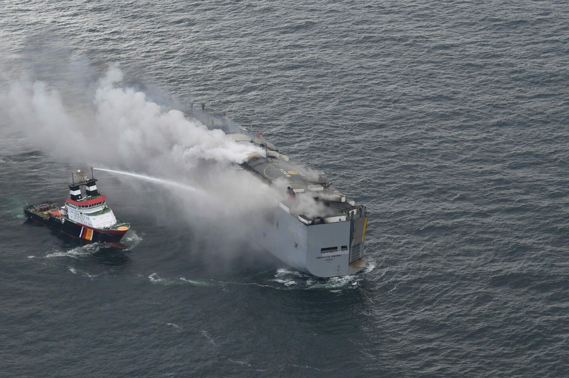 Με βάση τον εκπρόσωπο της ολλανδικής ακτοφυλακής, η φωτιά το πρωί της Πέμπτης συνεχίζει να καίει. Η επιχείρηση ρυμούλκησης του φορτηγού πλοίου μπορεί να πραγματοποιηθεί μόνο αφού σβήσει η φωτιά.