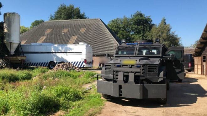 Η ολλανδική αστυνομία εισέβαλε σε ένα αγρόκτημα στο βόρειο τμήμα της χώρας την Παρασκευή και συνέλαβε τουλάχιστον 17 υπόπτους.