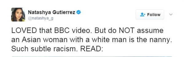 Το ότι μια μεγάλη μερίδα κόσμου συμπέρανε πως η γυναίκα ήταν η νταντά των παιδιών, παρά η μητέρα τους, αν μη τι άλλο, αναπαρήγαγε για ακόμη μία φορά τα φυλετικά στερεότυπα γύρω από τον ρόλο των γυναικών με καταγωγή την Ασία στη Δύση.