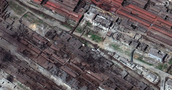 Ισοπεδωμένο από τις ρωσικές βόμβες είναι το εργοστάσιο χάλυβα Αζοφστάλ, το τελευταίο ουκρανικό καταφύγιο στη Μαριούπολη, σύμφωνα με νέα δορυφορική εικόνα της εταιρείας Maxar Technologies.