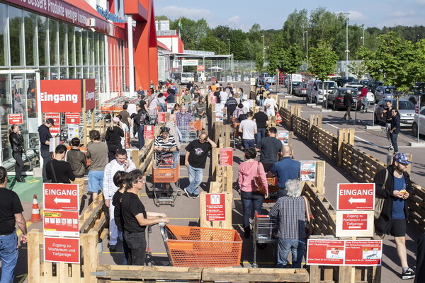 «Νομίζω ότι ήρθε η ώρα. Πρέπει να ζήσουμε τη ζωή μας, επομένως πιστεύω ότι είναι σημαντικό να συνεχίσουμε τις δραστηριότητές μας και να έρθουμε σε επαφή με ανθρώπους, ακόμα και σε μια ουρά σαν κι αυτή», είπε η Κριστιάν Ανσερνέ καθώς περίμενε στην ουρά για να μπει στο φυτώριο Schillinger στο Γκλαντ. Η Αν Σίλιγκερ, η ιδιοκτήτρια του καταστήματος, είπε ότι η επιχείρησή της παρέμεινε κλειστή από τις 17 Μαρτίου, με αποτέλεσμα να αναγκαστεί να πετάξει το ένα τέταρτο της ετήσιας της παραγωγής και να χάσει το 15% των πωλήσεων. «Είναι πολύ για εμάς και θα είναι δύσκολο να το ξεπεράσουμε» υπογράμμισε, αποτυπώνοντας με τη φράση αυτή την ανησυχία κι άλλων ιδιοκτητών μικρών επιχειρήσεων.