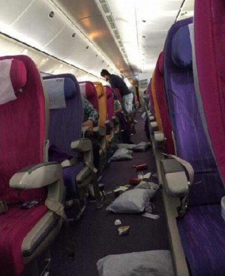 Πανικός προκλήθηκε σε πτήση των Ταϊλανδέζικων Αερογραμμών από αναταράξεις ενώ το αεροσκάφος τύπου Boeing 777 βρισκόταν πάνω από τη Σιγκαπούρη. Ενας επιβάτης και πέντε μέλη του πληρώματος τραυματίστηκαν από τις σοβαρές αναταράξεις ενώ οι φωτογραφίες που δημοσιεύτηκαν δείχνουν την κατάσταση που δημιουργήθηκε εντός του αεροσκάφους που μετέφερε 72 επιβάτες και 12μελές πλήρωμα.