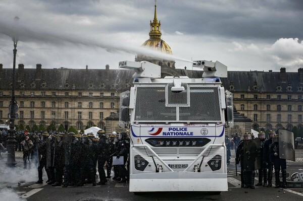 Η αστυνομία έκανε χρήση αντλιών νερού υπό πίεση, μετέδωσαν δημοσιογράφοι του Γαλλικού Πρακτορείου.