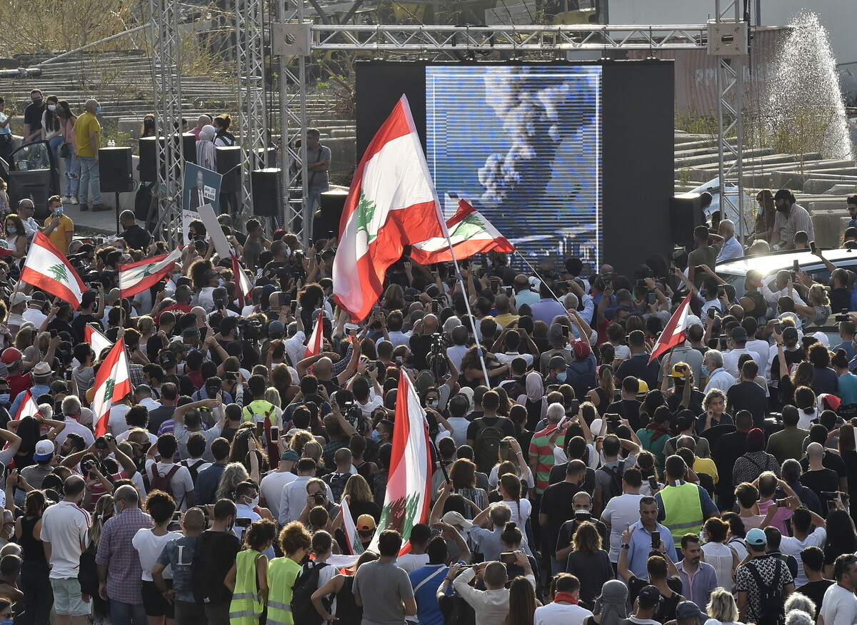 Κάποιοι έκλαιγαν, κάποιοι μόλις που συγκρατούσαν τα δάκρυά τους. Σε μια μεγάλη οθόνη προβάλλονταν εικόνες από την έκρηξη και τις σκηνές πανικού που ακολούθησαν στις συνοικίες, οι οποίες βρίσκονται κοντά στο λιμάνι, και διαλύθηκαν.