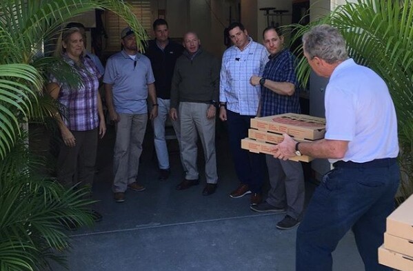 Ο 72χρονος Μπους εξέπληξε τους επτά σωματοφύλακες του, όπως φαίνεται και στη φωτογραφία που δημοσίευσε στον λογαριασμό του στο Instagram, προσφέροντας τους πίτσες.