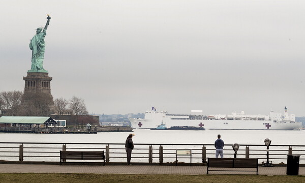 Το τεράστιο USNS Comfort, ένα στρατιωτικό πλωτό νοσοκομείο 1.000 κλινών, κατέπλευσε σήμερα το πρωί στο λιμάνι της Νέας Υόρκης, όπου αναμένεται να βοηθήσει στην αποσυμφόρηση των νοσοκομείων της πόλης, που βρίσκονται αντιμέτωπα με τη συρροή ασθενών του κορωνοϊού.