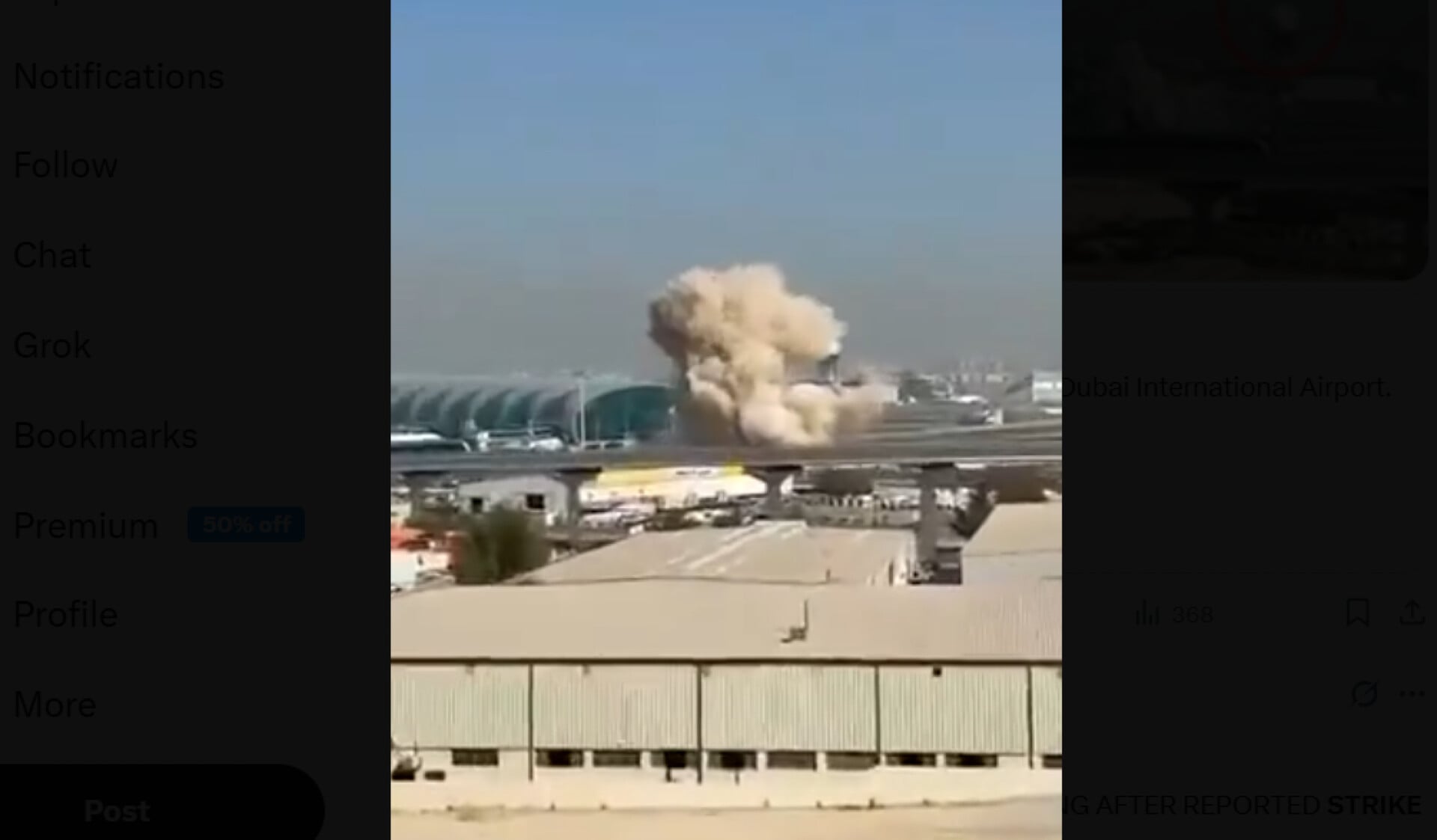 Βίντεο που τράβηξε μάρτυρας και επαλήθευσε το BBC, δείχνει ένα drone να συντρίβεται κοντά στο αεροδρόμιο του Ντουμπάι. Η ακριβής τοποθεσία της πτώσης δεν είναι ξεκάθαρη, φαίνεται όμως να βρίσκεται κοντά στην περιοχή των τερματικών, ενώ μάρτυρες ανέφεραν ότι μετά από έναν δυνατό κρότο εμφανίστηκε μαύρος καπνός πάνω από το αεροδρόμιο.