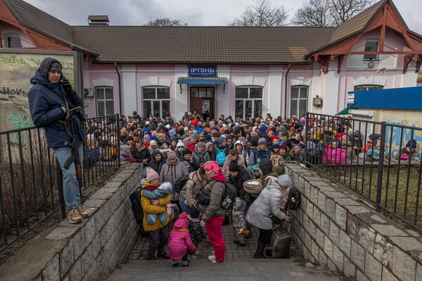 Τα στιγμιότυπα που κατέγραψαν οι φωτογράφοι είναι ενδεικτικά του δράματος και της απόγνωσης που βιώνουν οι άμαχοι από τη στιγμή που ξεκίνησε η ρωσική εισβολή.