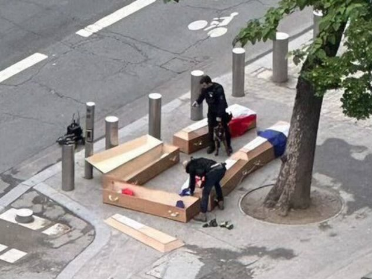It was designed as piece of art (empty coffins), but French police… pic.twitter.com/SrN1hjuHkQ