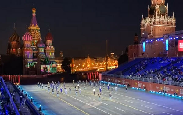 Η ελληνική στρατιωτική ορχήστρα «Θησέας» αφιέρωσε την εμφάνισή της στον συνθέτη, ενώ τα πορτρέτα του προβλήθηκαν πάνω στην ελληνική σημαία με φόντο το Κρεμλίνο.
