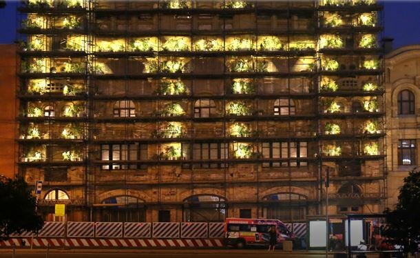 Οι δημιουργοί του έργου πρότειναν κατασκευές από δεντροφυτεύσεις, οι οποίες δεν χρησιμοποιούνται προσωρινά. Έτσι για έναν μήνα οι σκαλωσιές στη βόρεια πρόσοψη του Μουσείου του Πολυτεχνείου μετατράπηκαν σε έργο τέχνης.