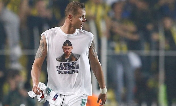 Ρώσος ποδοσφαιριστής της Λοκομοτίβ Μόσχας έβαλε σε νέα δοκιμασία τις ήδη τεταμένες σχέσεις μεταξύ της Ρωσίας και της Τουρκίας, βγάζοντας τη φανέλα του μετά το τέλος του αγώνα της ομάδας του με την Φενέρμπαχτσέ  για να αποκαλύψει ένα t-shirt με την  εικόνα του  Βλαντιμίρ Πούτιν.