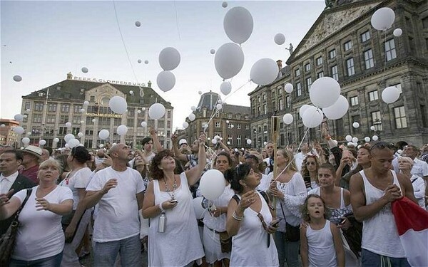 Σιωπηρή πορεία διοργανώθηκε χθες στους δρόμους του Άμστερνταμ. Χιλιάδες Ουκρανοί ντυμένοι στα λευκά και κρατώντας άσπρα μπαλόνια στα χέρια συμμετείχαν στην πορεία στη μνήμη των θυμάτων της πτήσης ΜΗ17 των Μαλαισιανών αερογραμμών.