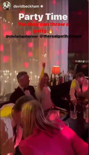 Παρόντες στο πάρτι ήταν και σύντροφοι των Spice Gίrls. Ο σύζυγος της εορτάζουσας, Christian Horner, ο Jade Jones, που παντρεύτηκε με την Έμα Μπάρτον πέρυσι μετά από σχεδόν 20 χρόνια σχέσης, και ο Ντέιβιντ Μπέκαμ.