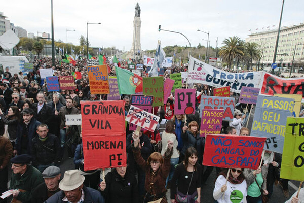 Πάνω από 1 εκ. διαδηλωτές βγήκαν το Σαββατοκύριακο στους δρόμους των μεγάλων πόλεων της Πορτογαλίας προκειμένου να διαδηλώσουν την αντίθεσή τους στη γραμμή λιτότητας που επιβάλει στη χώρα η Τρόικα.
