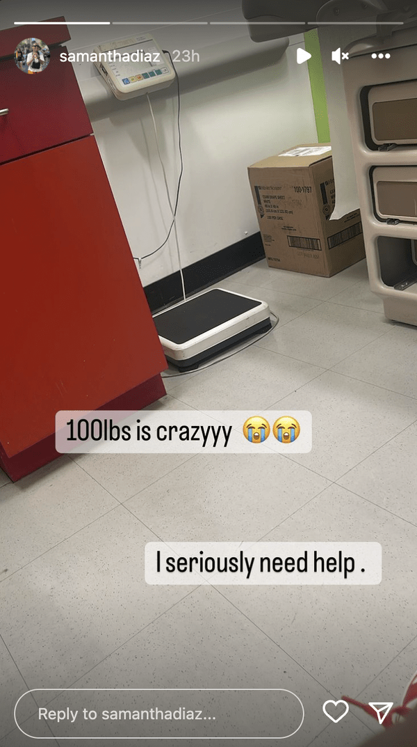 Αν και δεν είπε τον λόγο που την οδήγησε στο νοσοκομείο η ανάρτηση μιας εικόνας από μία ζυγαριά και η λεζάντα «45 κιλά είναι τρελό. Σοβαρά, χρειάζομαι βοήθεια» έκανε πολλούς να υποθέσουν ότι πρόκειται ενδεχομένως για ανορεξία.