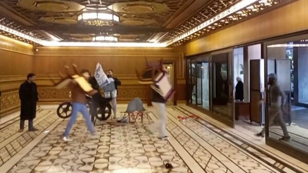 Βίντεο που έχουν κατακλύσει τα μέσα κοινωνικής δικτύωσης δείχνουν Σύρους πολίτες να εισέρχονται στο προεδρικό μέγαρο στη Δαμασκό, την ιδιωτική κατοικία του προέδρου Μπασάρ αλ Άσαντ, και να βιντεοσκοπούν το εσωτερικό του με τα τηλέφωνά τους.
