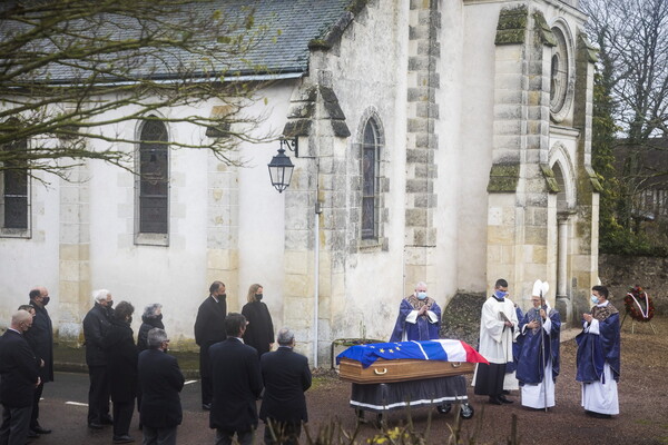 Λόγω των περιορισμών για τον νέο κορωνοϊό στη Γαλλία, περίπου 40 άνθρωποι, οικογένεια και στενός κύκλος, παρέστησαν στην κηδεία.