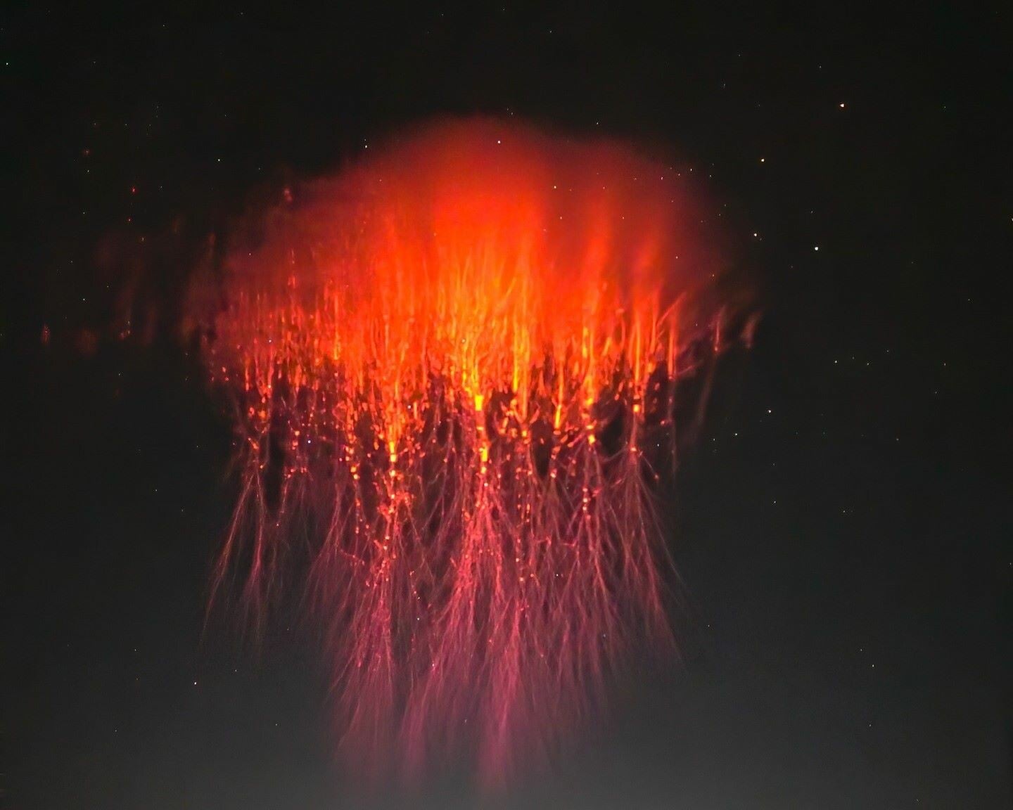 Κατά τη διάρκεια «μιας αποστολής καταδίωξης καταιγίδων», όπως γράφει το National Geographic, στο Big Bend National Park του Τέξας, «ο φωτογράφος Paul Smith αποτύπωσε αυτό που οι επιστήμονες αποκαλούν “παροδικό φωτεινό φαινόμενο” (TLE), δηλαδή μια σύντομη ηλεκτρική λάμψη πάνω από τα σύννεφα της καταιγίδας, που μπορεί να διαρκέσει λιγότερο ακόμη και από ένα χιλιοστό του δευτερολέπτου».