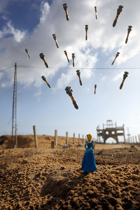 Ο McCarty αναβίωσε την εικόνα με παιχνίδια που είχε βρει στην πόλη, εν μέσω –όπως θυμάται- βομβαρδισμών σε κοντινά χωριά. Αυτή είναι η φωτογραφία που έβγαλε χρησιμοποιώντας πυραύλους-παιχνίδια και τη φιγούρα της Σταχτοπούτας:
